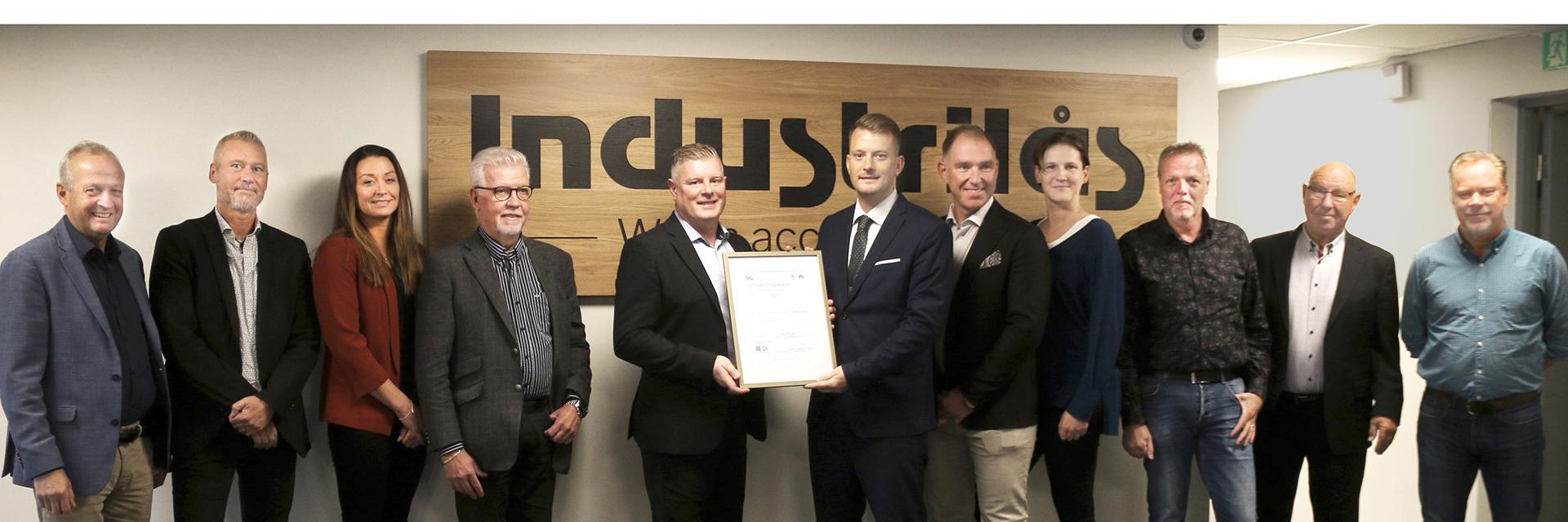 Christopher Krutrök (Nordics Branch Manager der BSI Group), der für die Prüfung verantwortlich war, übergab das unterzeichnete Zertifikat am Freitag in der Industrilas Konzernzentrale in Nässjö. Zu den Anwesenden gehörten Klaus Mölzer (Industrilas-Gründer) und Fredrik Mölzer (CEO der Industrilas Gruppe).