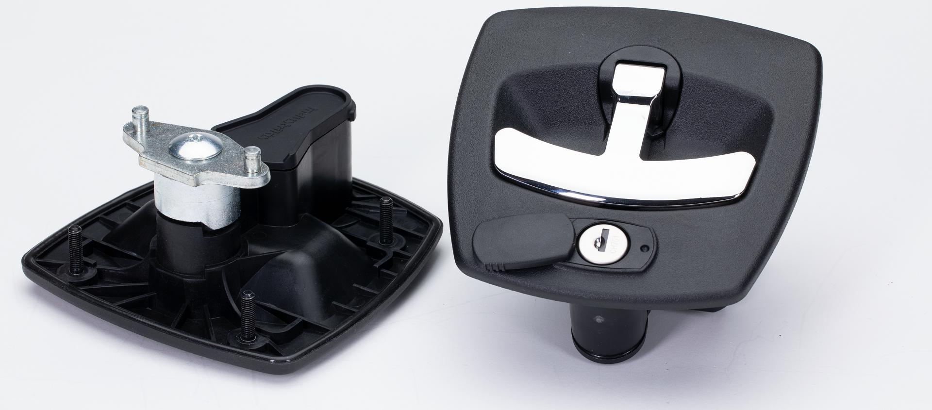 Industrilas Vector™ T3 Central Locking is adapted to both 12- and 24-volt systems. An advantage with this version is that when you connect the latch to the electrical system, you can use the vehicle’s existing key to lock and unlock the Vector T3 latches. When Vector T3 is connected to the vehicle’s information system, it signals if the T-bar is open or closed and if the latch is locked or unlocked. In case something goes wrong with the vehicle’s electrical system, Vector T3’s mechanical override cylinder makes sure you can always open the latch.