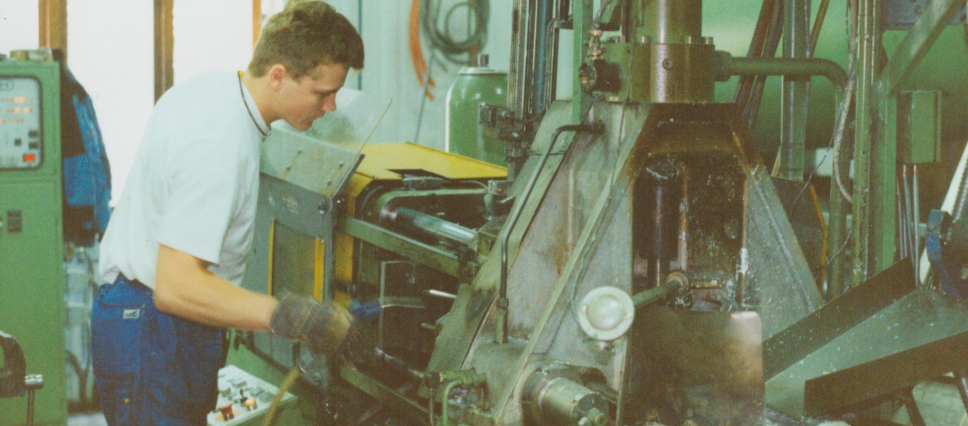 A while after Bengt-Åke got onboard, Industrilas decided to expand the production with zinc casting, even though, no one at the company had experience with it. But the decision was made and the man for the job was Bengt-Åke. At night, he travelled 90 km to Värnamo to learn and cast in a machine that was borrowed from Gjuteriteknik. In 1987, Industrilas bought its very first cast machine that was in use until 2020.