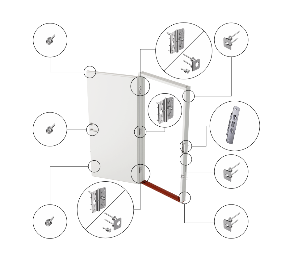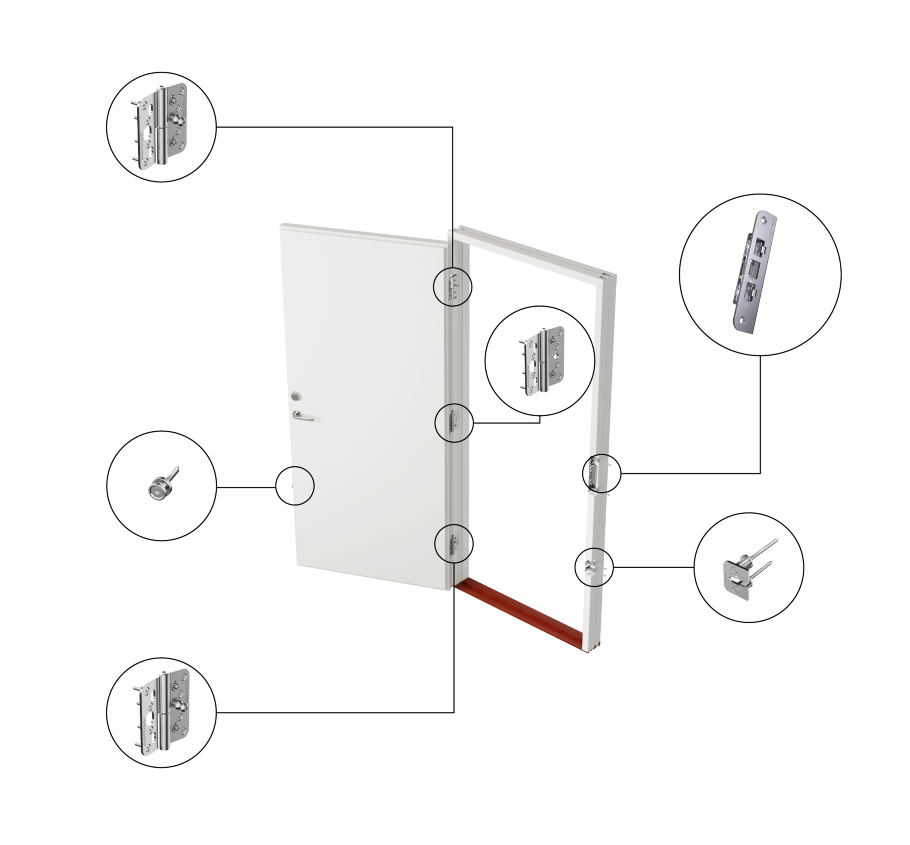 Break-in Protection 1627 is a robust solution that solves this problem and prevents a door from being broken open. Break-in Protection 1627 is installed in the door and frame, does not affect other hardware choices, meets international standards and allows the door to be certified to SSEN 1627: RC2 and RC3.