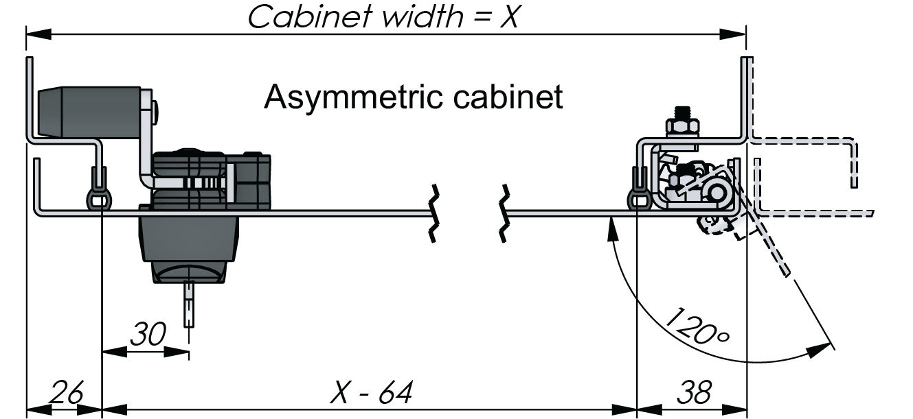 Minimized space for frame design, maximized usable cabinet width. External hinges optional with earthing kit.