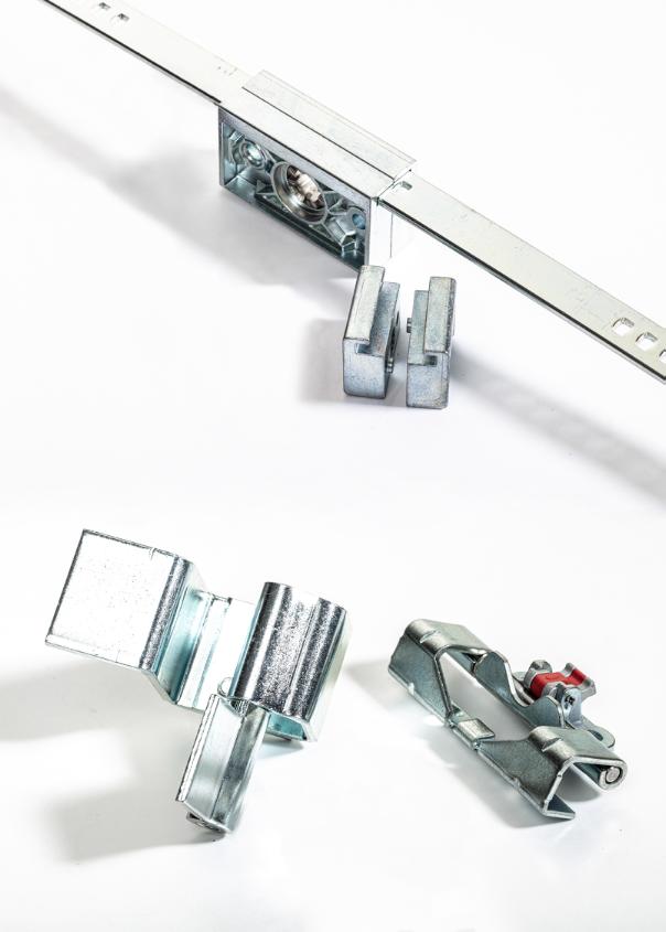 A Vision multipoint latching system is connected by rods, with rod guides keeping the rods in place. Rods are available in steel and stainless steel. Lengths are adapted according to your needs.